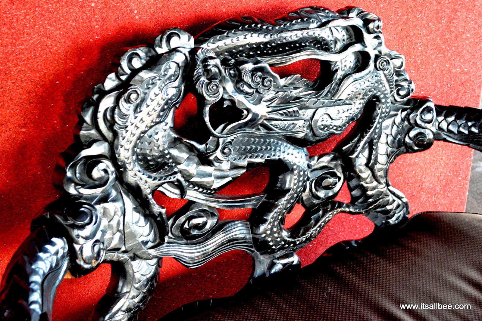 The room also features 776 opulent hand-carved wooden ceiling made with semi-precious porcelain dics, beautiful and ornately craved blackwood love seats and chairs including 17th century art. Another item in the room that drawers people to the tower is the 300-year old Wishing Chair with carvings of a dragon and phoenix which in Chinese culture relate to harmonious marriage.